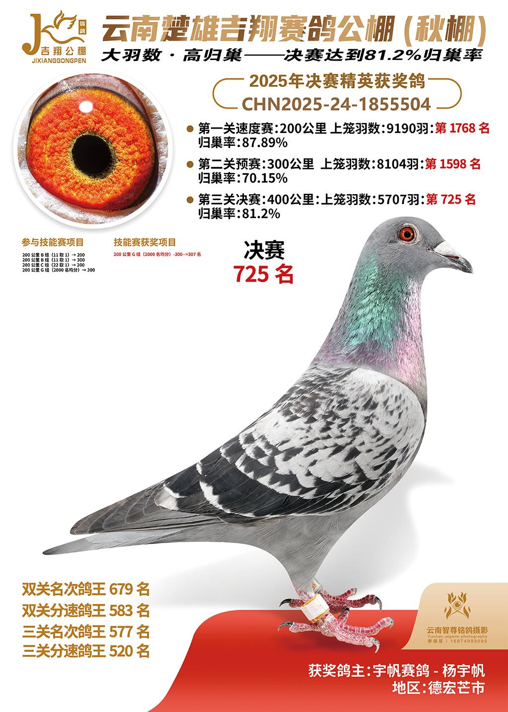 | 鸽主姓名 | 宇帆赛鸽-杨宇帆 |