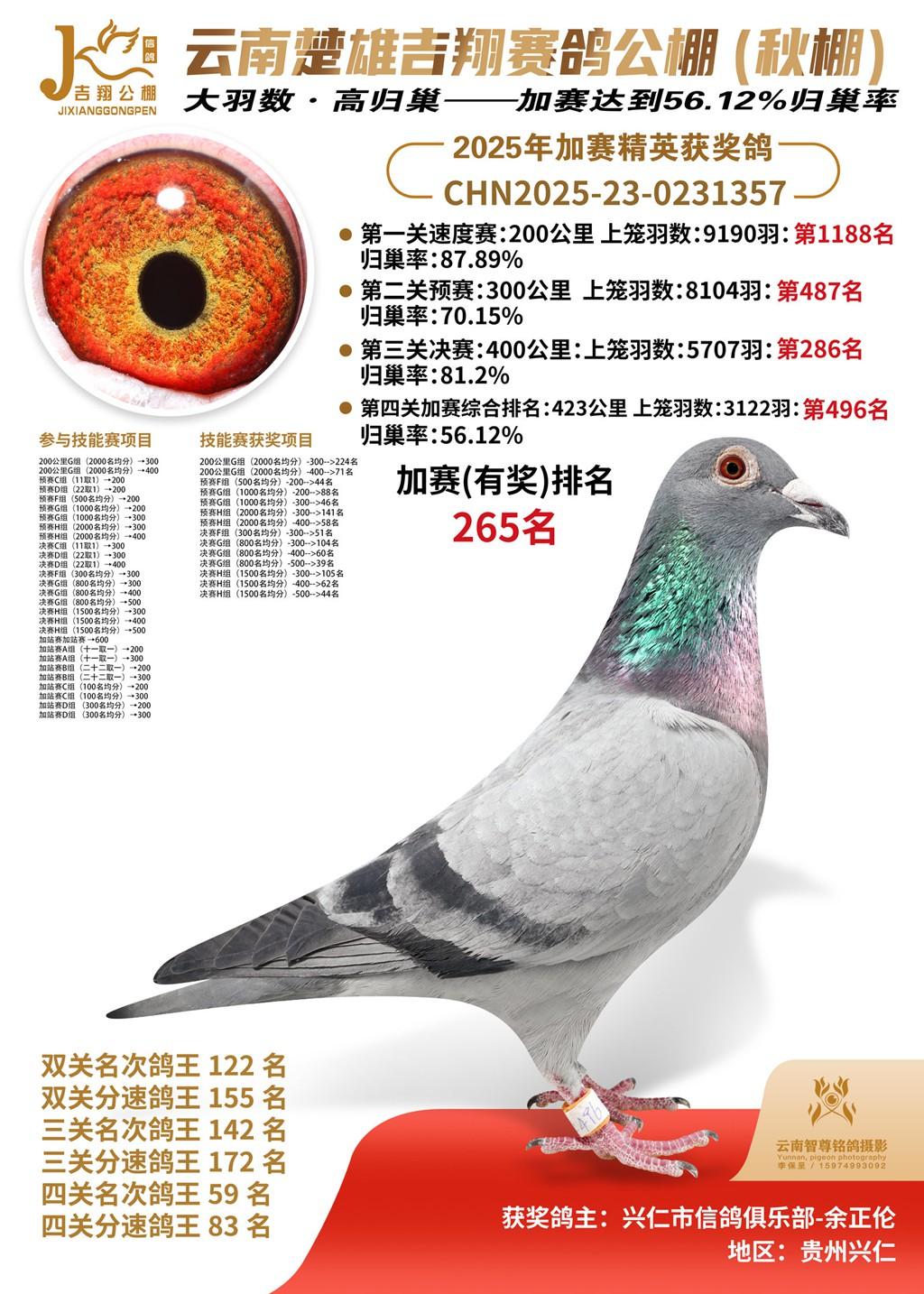 鸽主:兴仁市信鸽俱乐部-余正伦