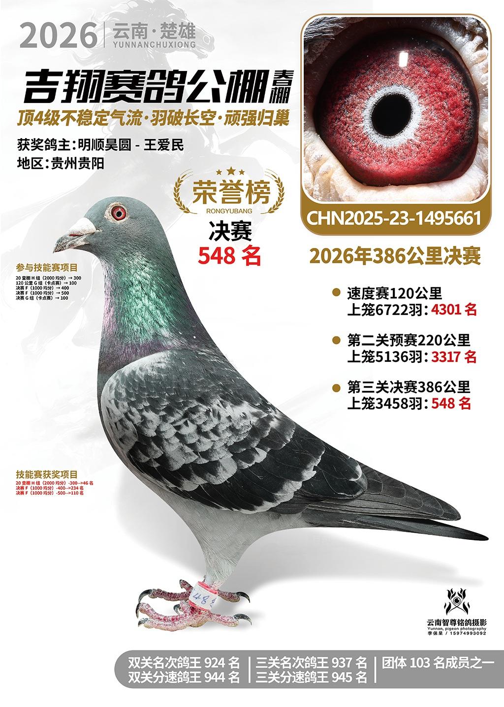 楚雄吉翔公棚(春棚)2026年386公里决赛获奖鸽欣赏