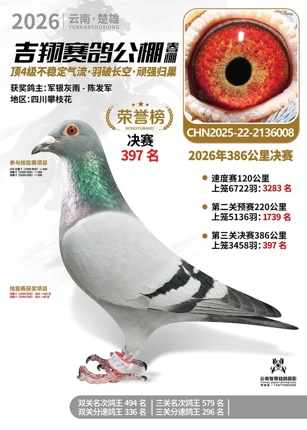 楚雄吉翔公棚(春棚)2026年386公里决赛获奖鸽欣赏