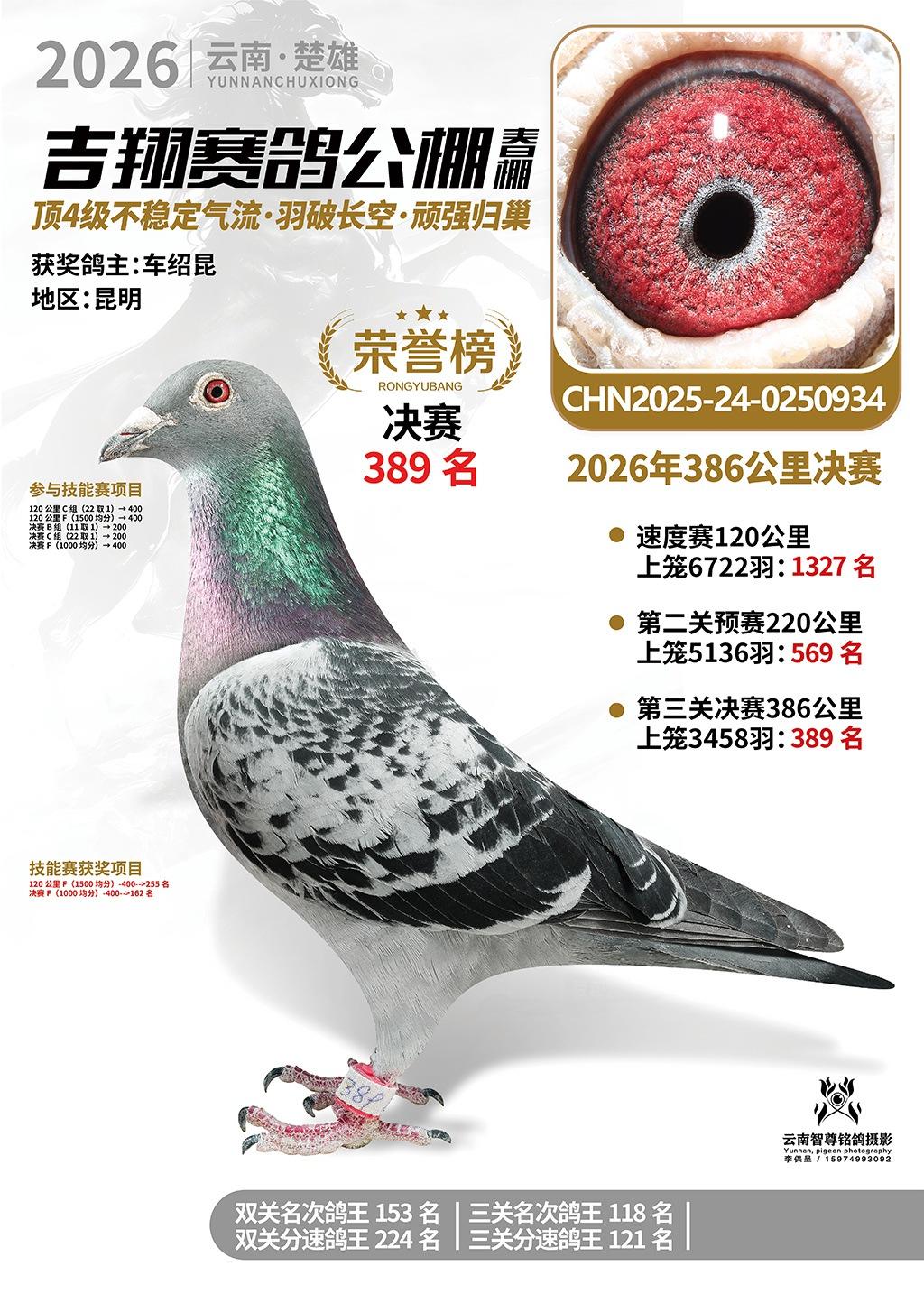 楚雄吉翔公棚(春棚)2026年386公里决赛获奖鸽欣赏