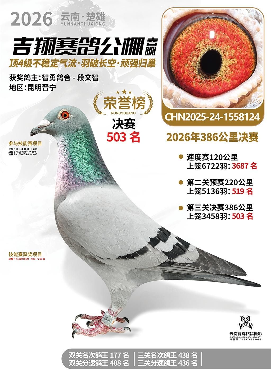楚雄吉翔公棚(春棚)2026年386公里决赛获奖鸽欣赏