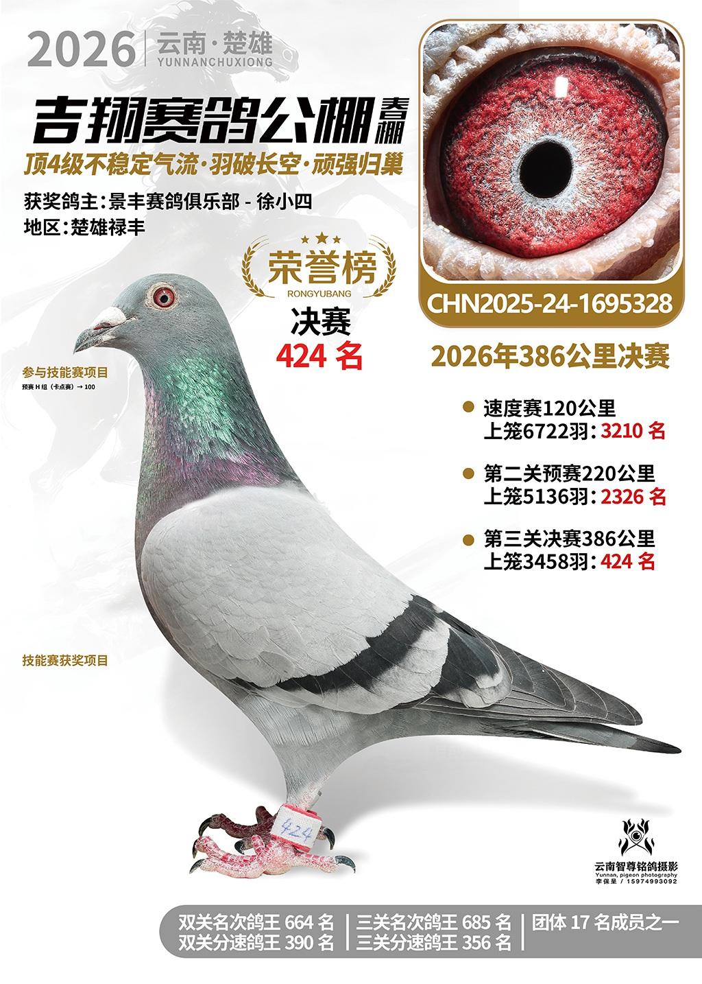 楚雄吉翔公棚(春棚)2026年386公里决赛获奖鸽欣赏
