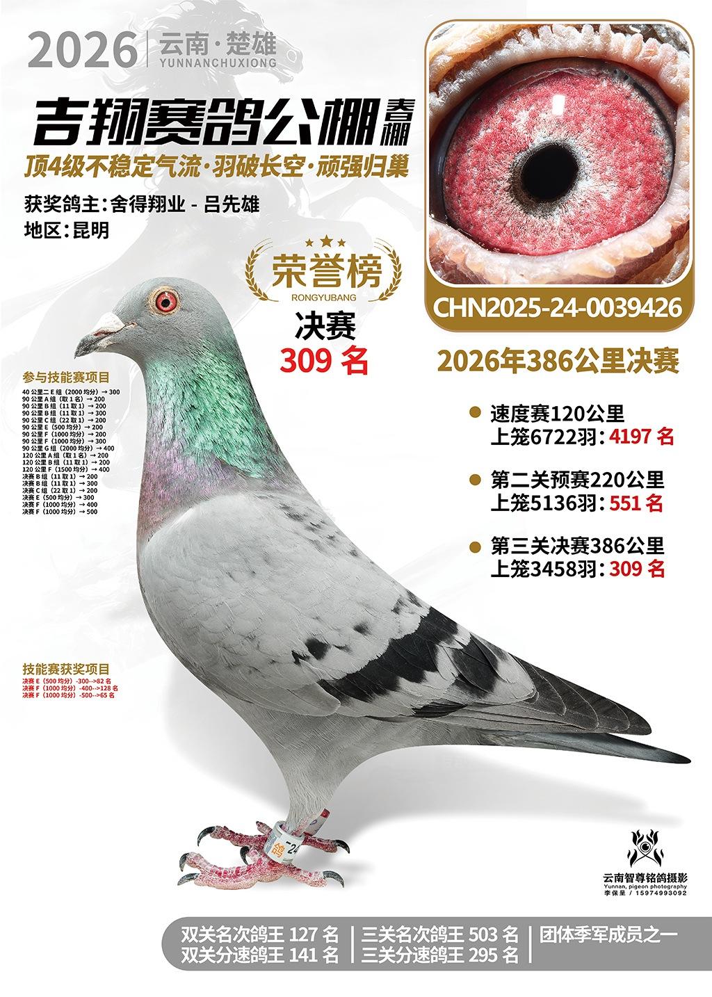楚雄吉翔公棚(春棚)2026年386公里决赛获奖鸽欣赏