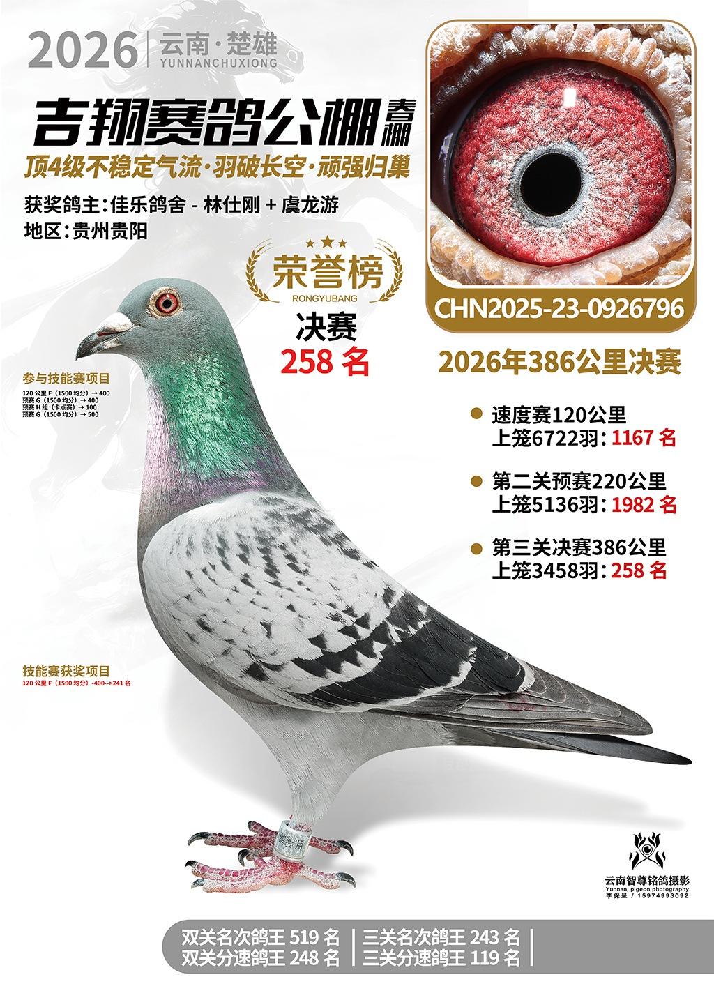 楚雄吉翔公棚(春棚)2026年386公里决赛获奖鸽欣赏