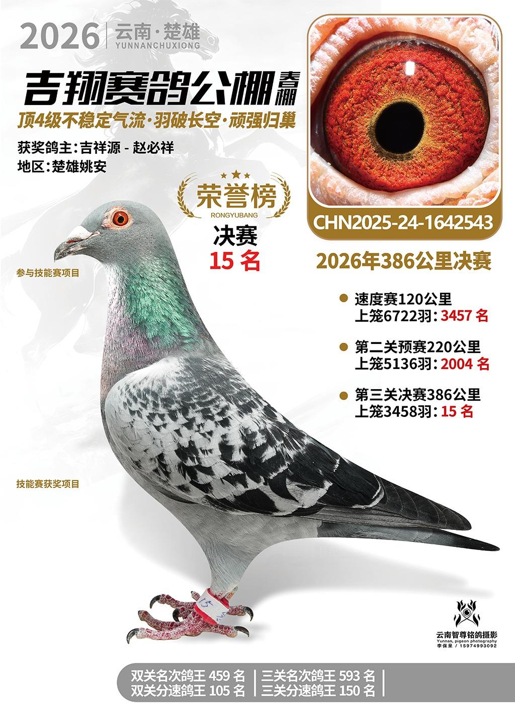 楚雄吉翔公棚(春棚)2026年386公里决赛获奖鸽欣赏