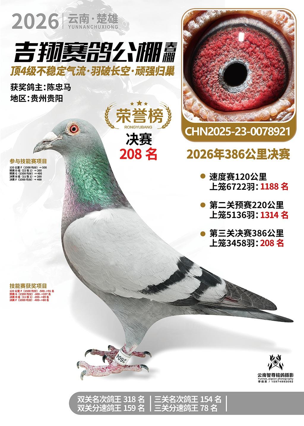 楚雄吉翔公棚(春棚)2026年386公里决赛获奖鸽欣赏