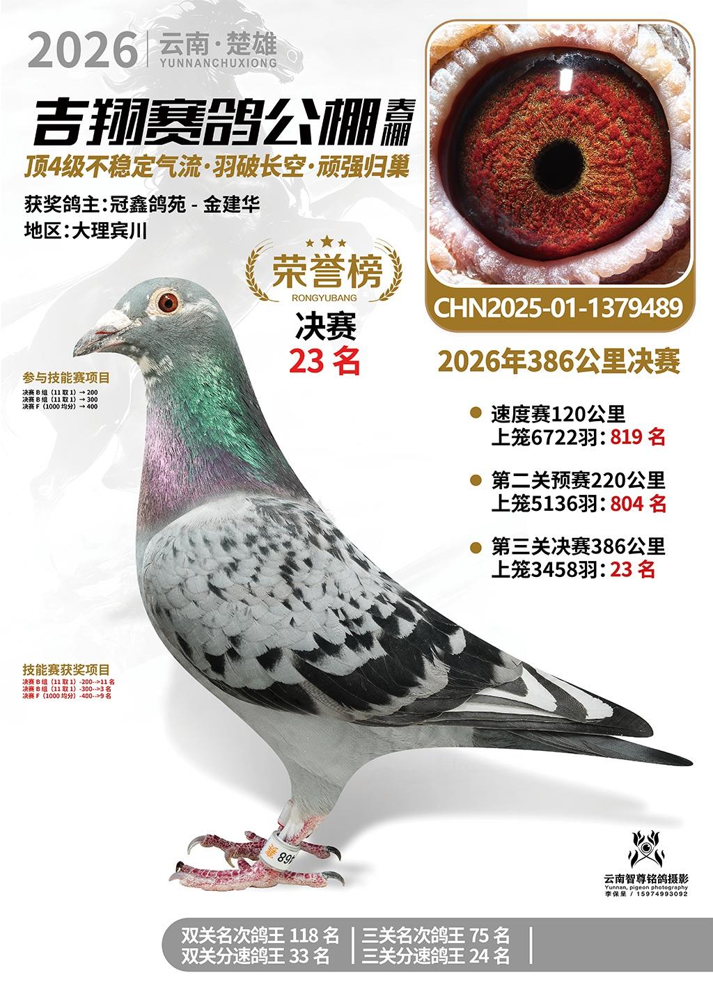 楚雄吉翔公棚(春棚)2026年386公里决赛获奖鸽欣赏