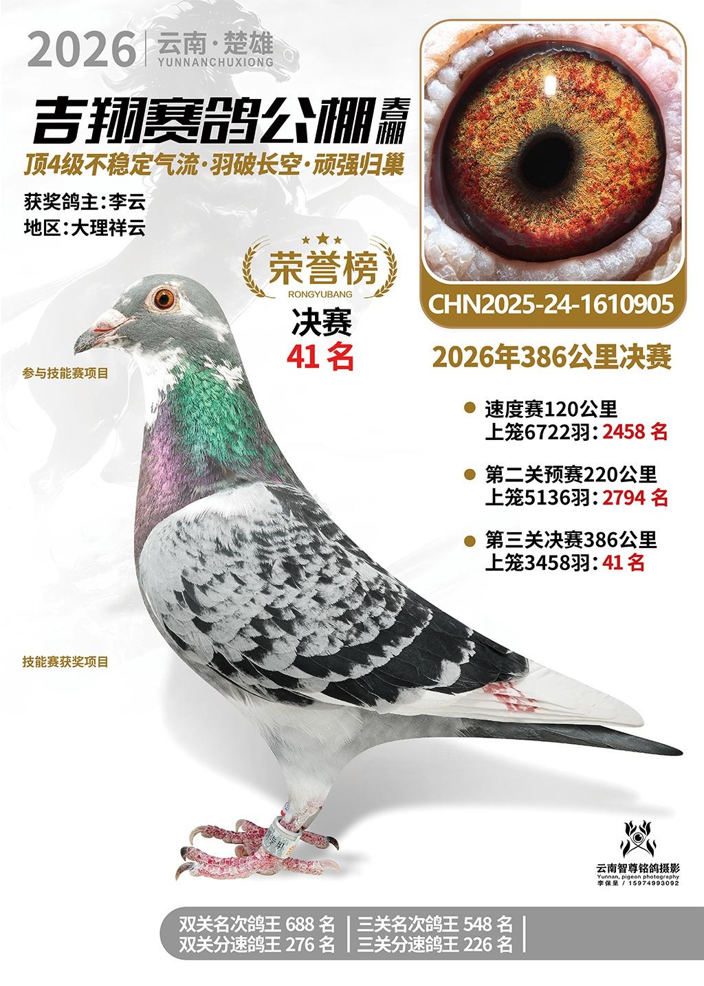 楚雄吉翔公棚(春棚)2026年386公里决赛获奖鸽欣赏