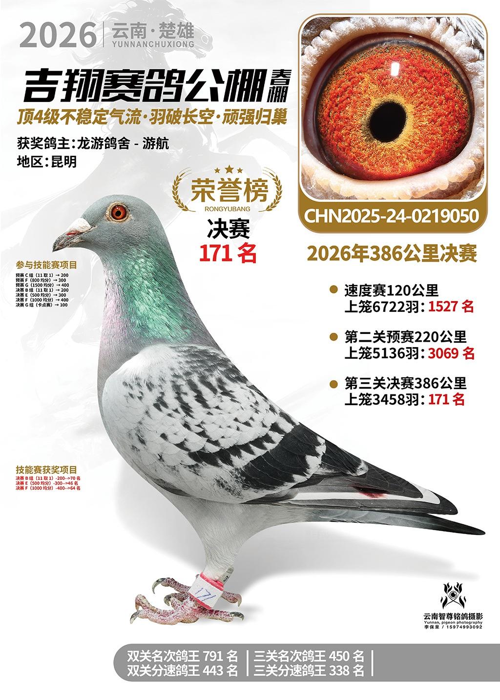楚雄吉翔公棚(春棚)2026年386公里决赛获奖鸽欣赏
