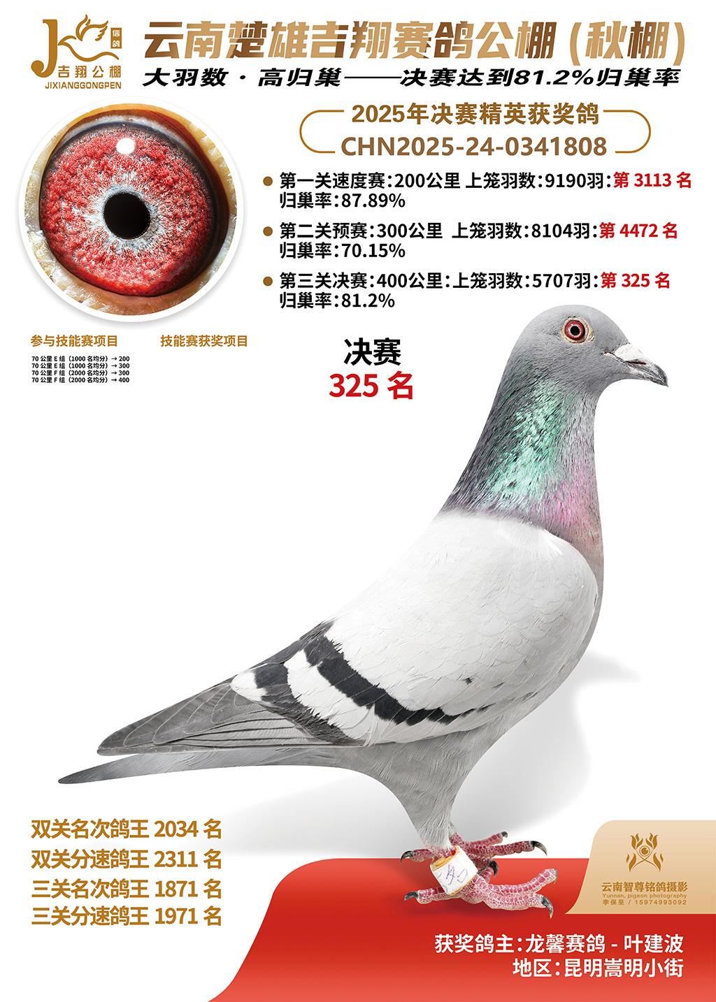 | 鸽主姓名 | 龙馨赛鸽-叶建波 |