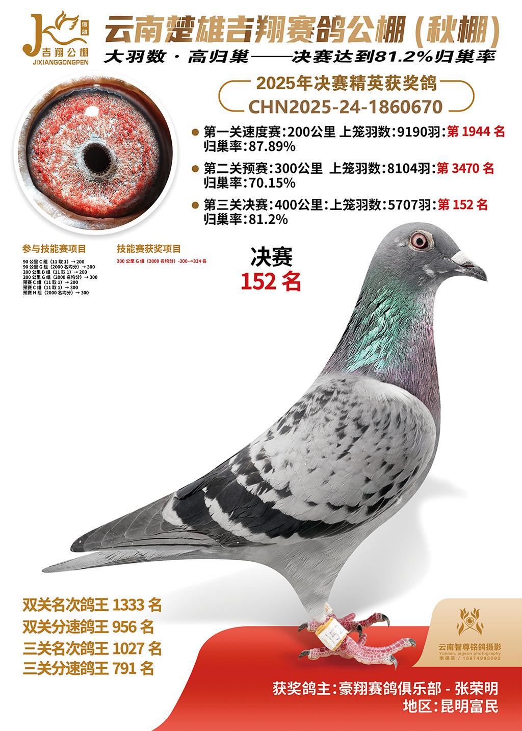 | 鸽主姓名 | 豪翔赛鸽俱乐部-张荣明 |