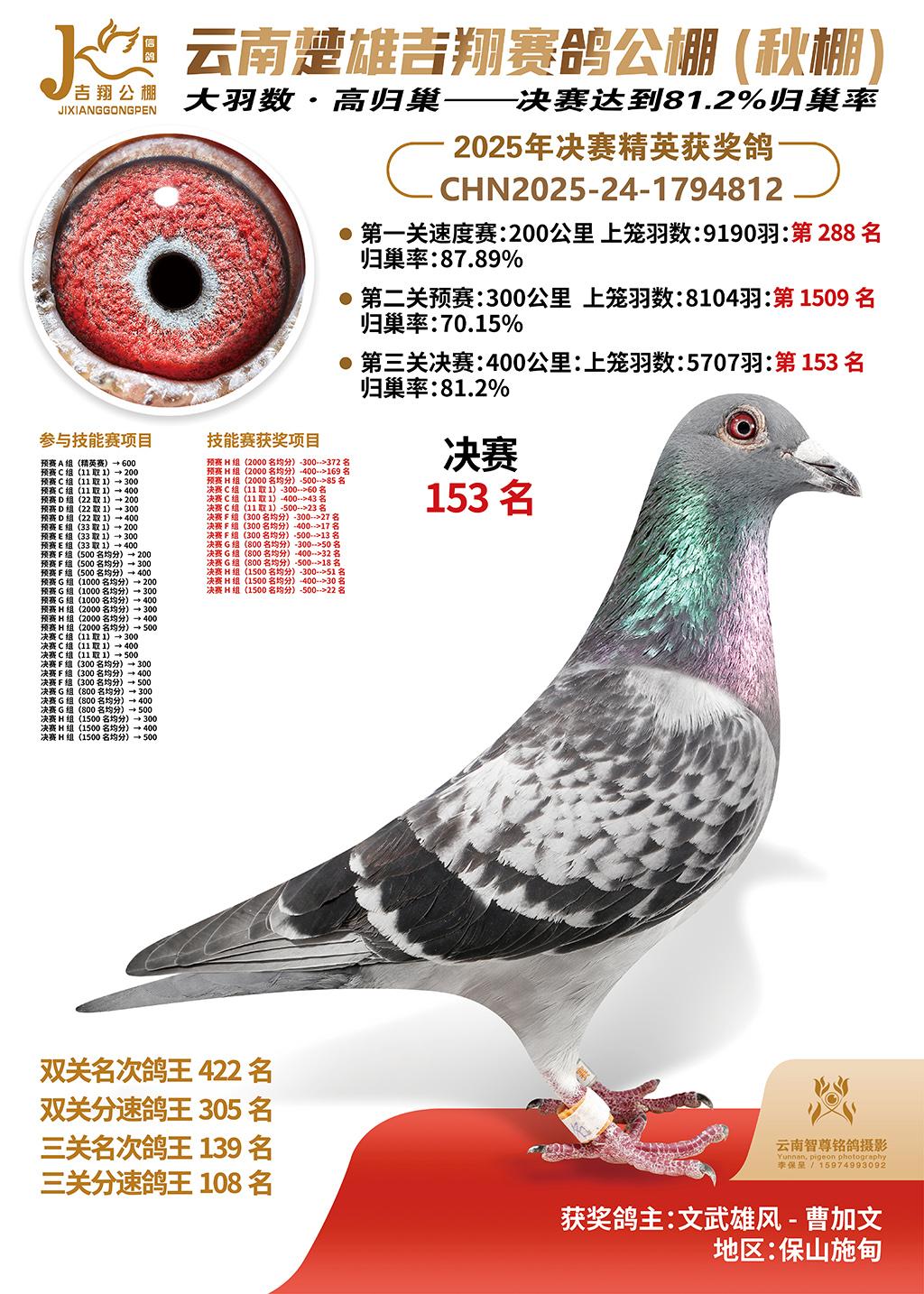 | 鸽主姓名 | 文武雄风-曹加文 |