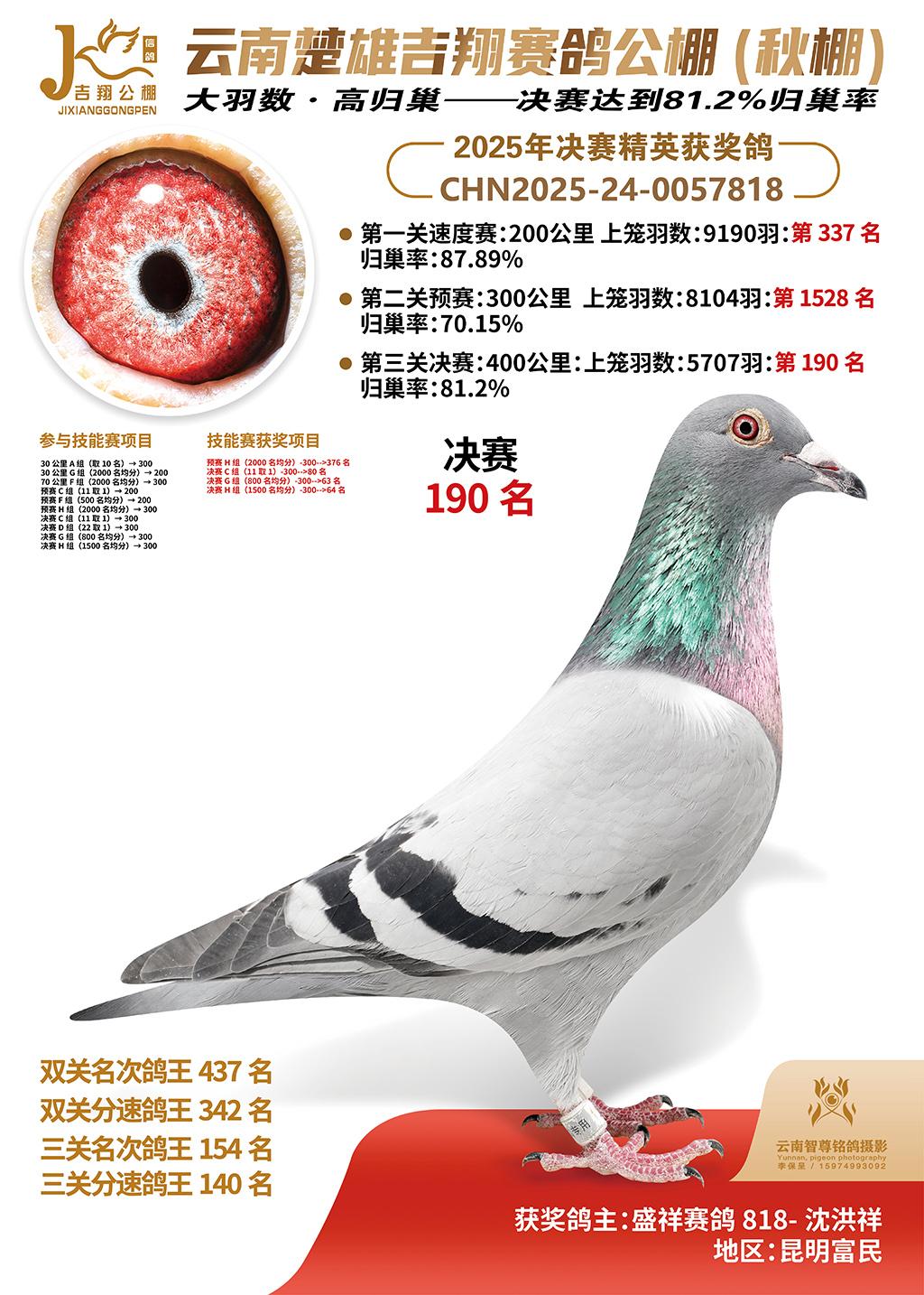 | 鸽主姓名 | 盛祥赛鸽818-沈洪祥 |