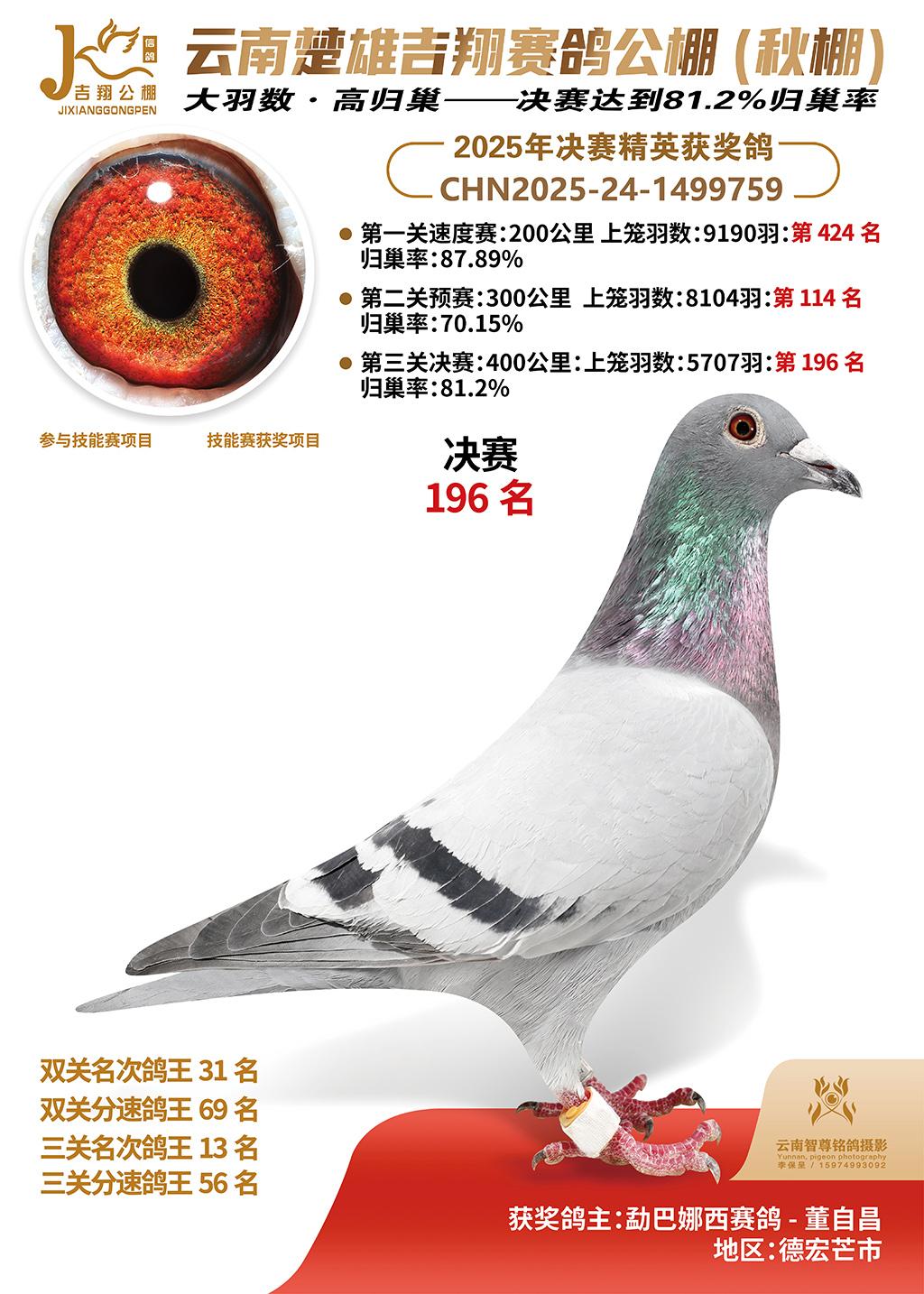 | 鸽主姓名 | 勐巴娜西赛鸽-董自昌 |