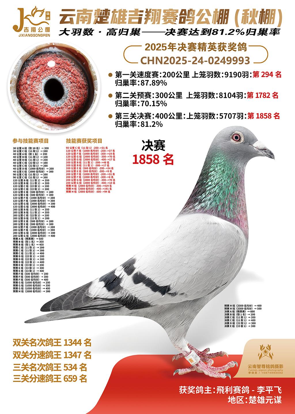 | 鸽主姓名 | 飛利赛鸽-李平飞 |