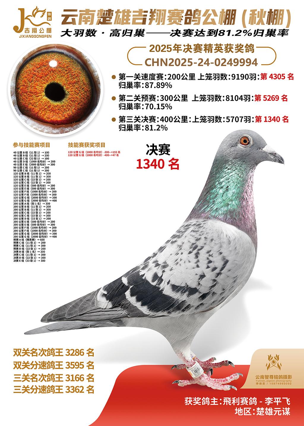 | 鸽主姓名 | 飛利赛鸽-李平飞 |