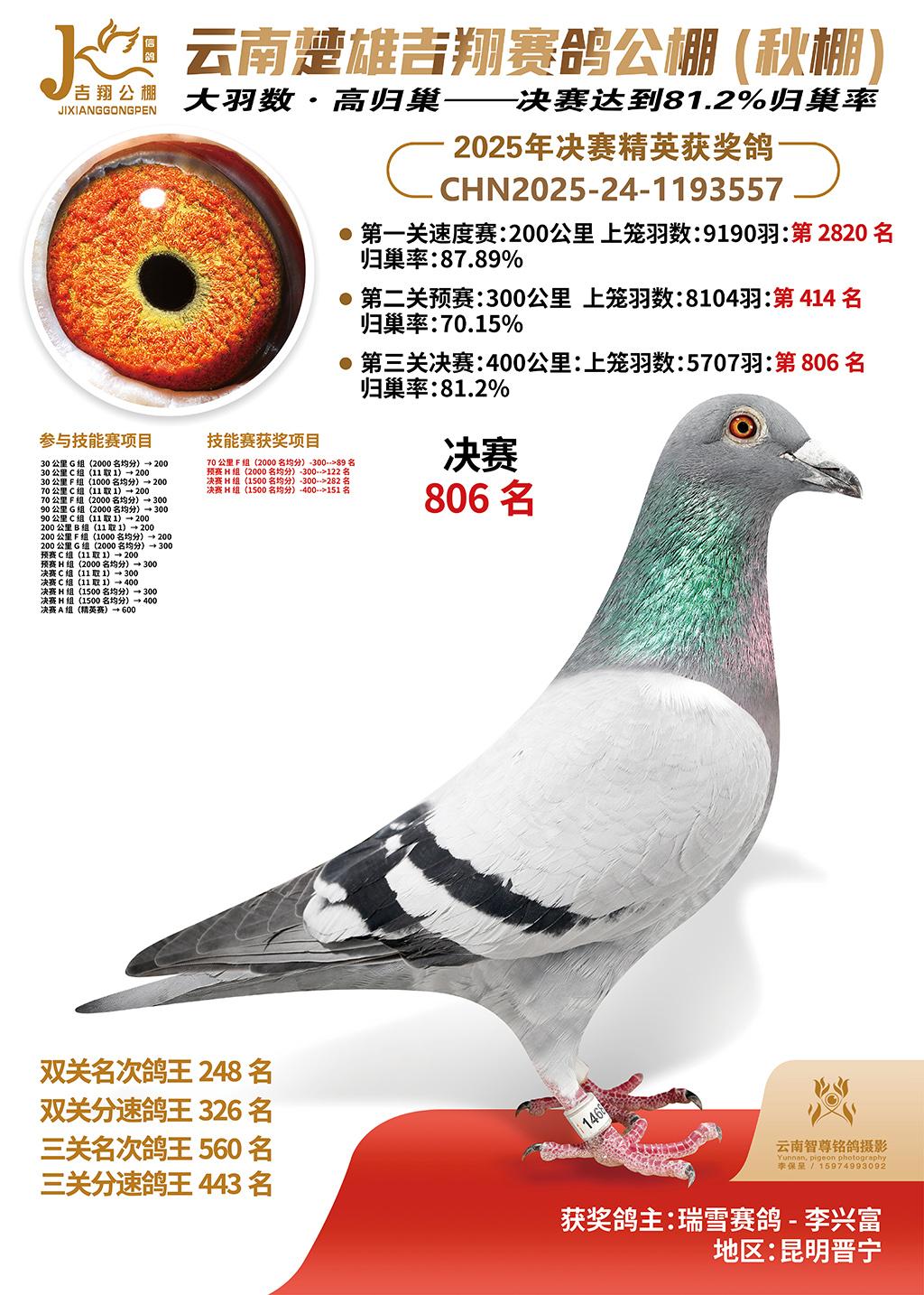 | 鸽主姓名 | 瑞雪赛鸽-李兴富 |