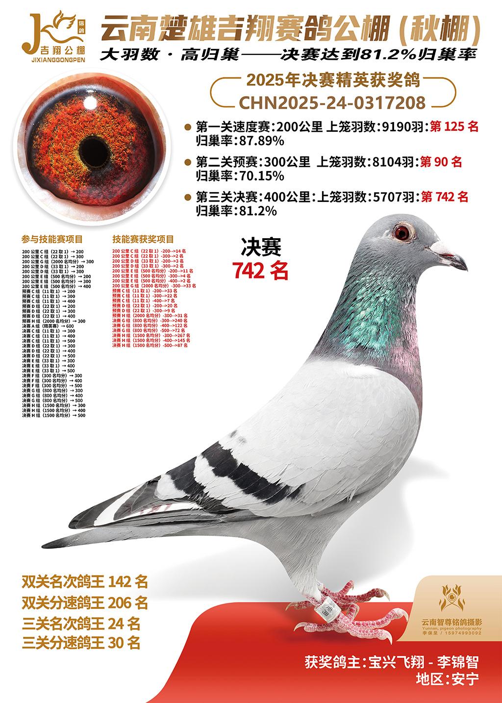 | 鸽主姓名 | 宝兴飞翔-李锦智 |