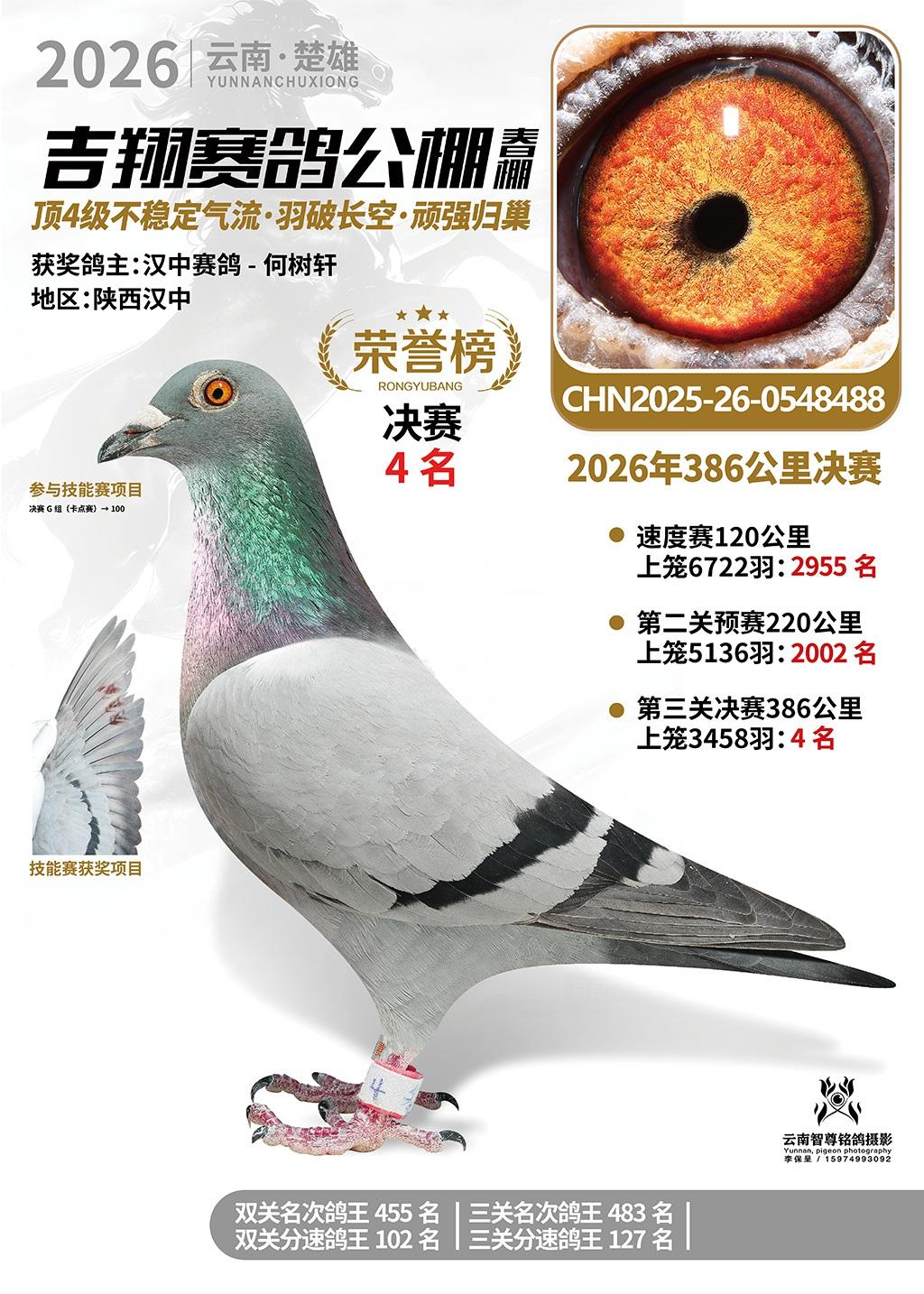 楚雄吉翔公棚(春棚)2026年386公里决赛获奖鸽欣赏