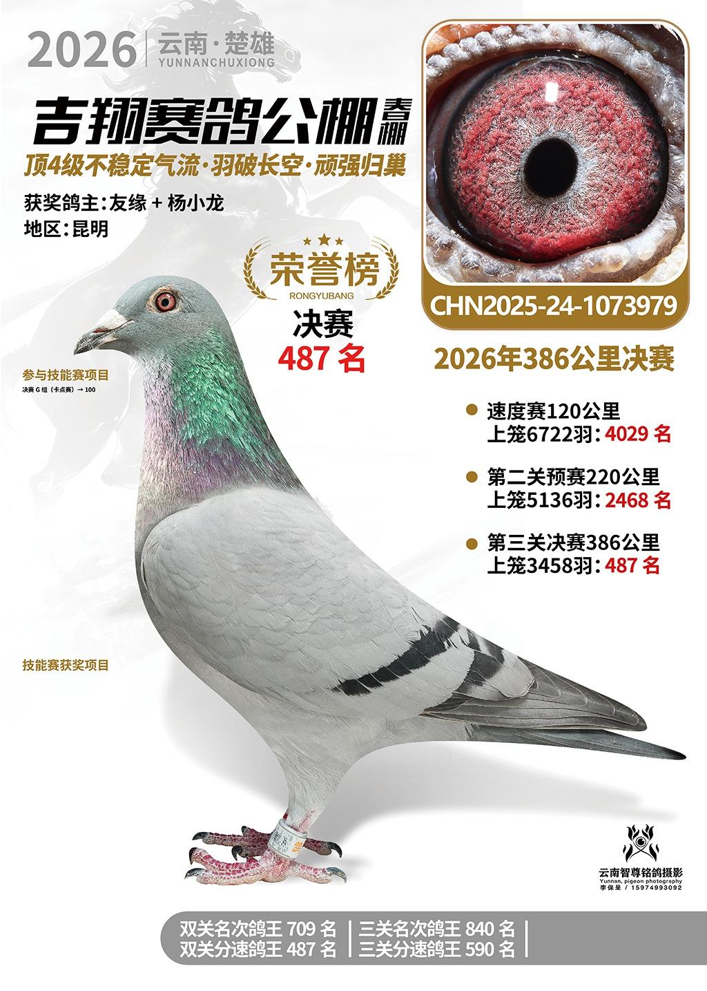 楚雄吉翔公棚(春棚)2026年386公里决赛获奖鸽欣赏