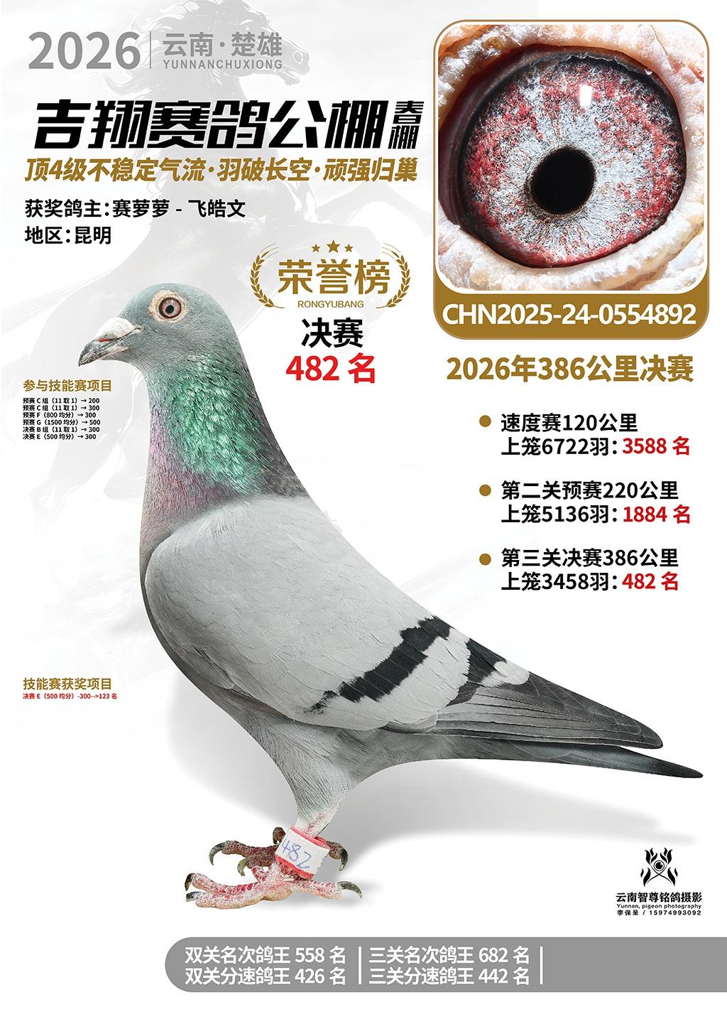 楚雄吉翔公棚(春棚)2026年386公里决赛获奖鸽欣赏