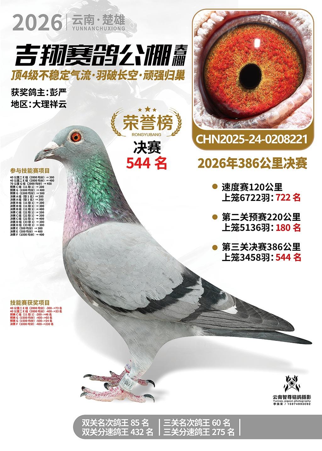 楚雄吉翔公棚(春棚)2026年386公里决赛获奖鸽欣赏