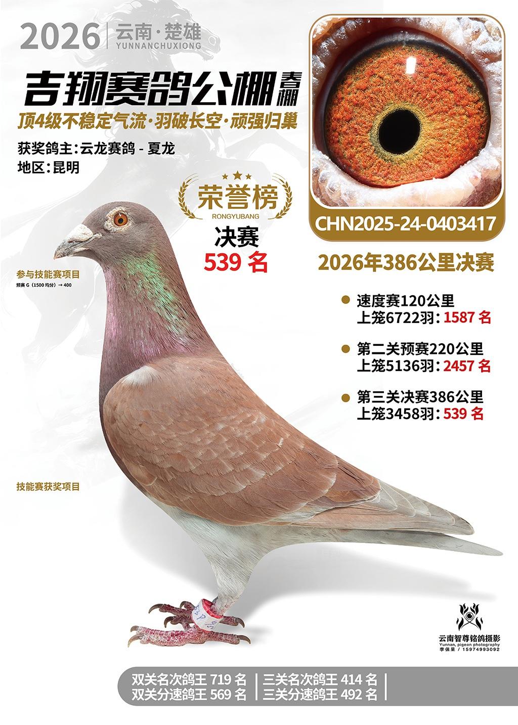 楚雄吉翔公棚(春棚)2026年386公里决赛获奖鸽欣赏