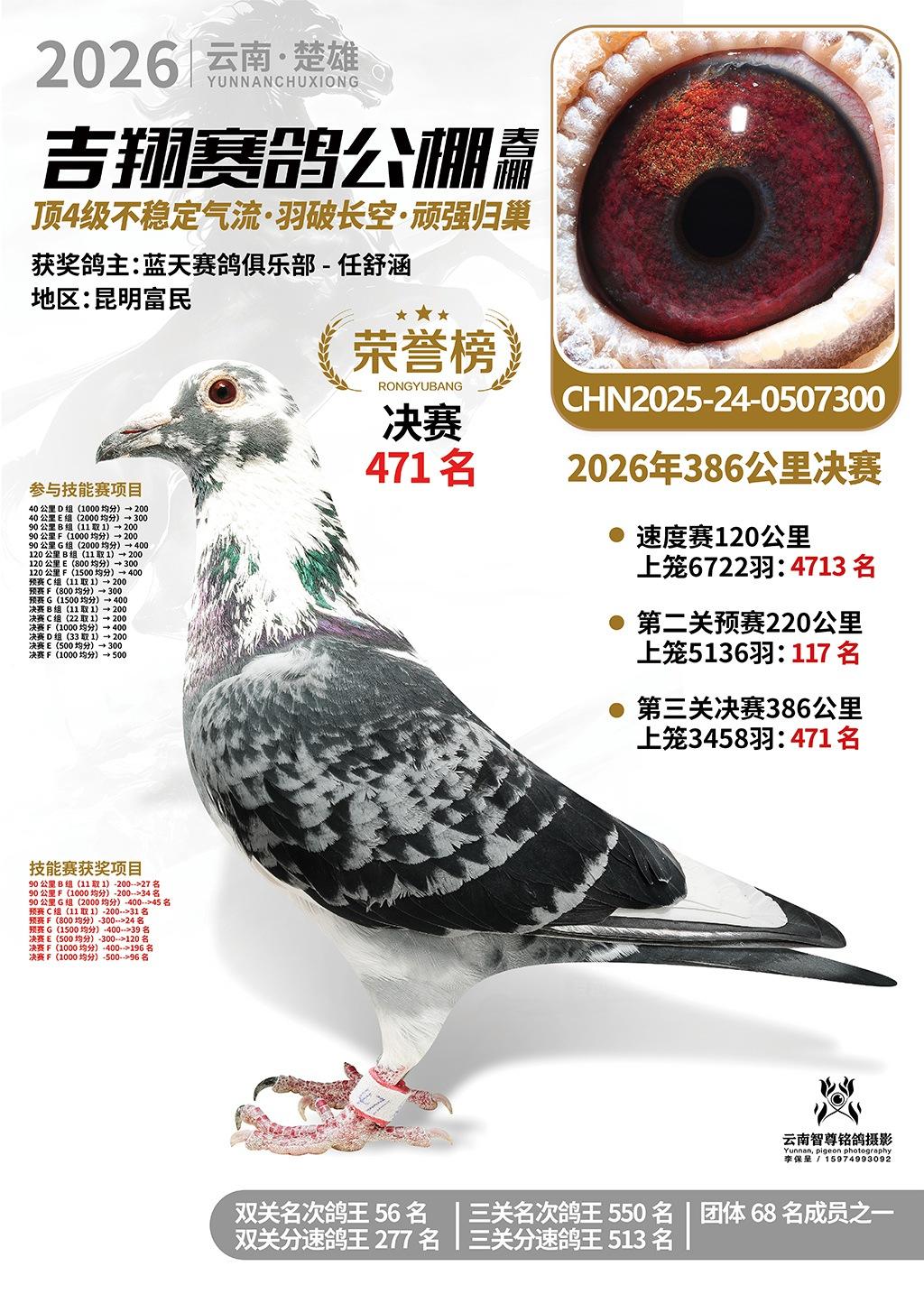 楚雄吉翔公棚(春棚)2026年386公里决赛获奖鸽欣赏