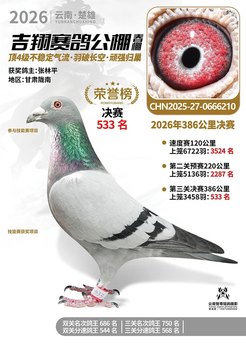 楚雄吉翔公棚(春棚)2026年386公里决赛获奖鸽欣赏