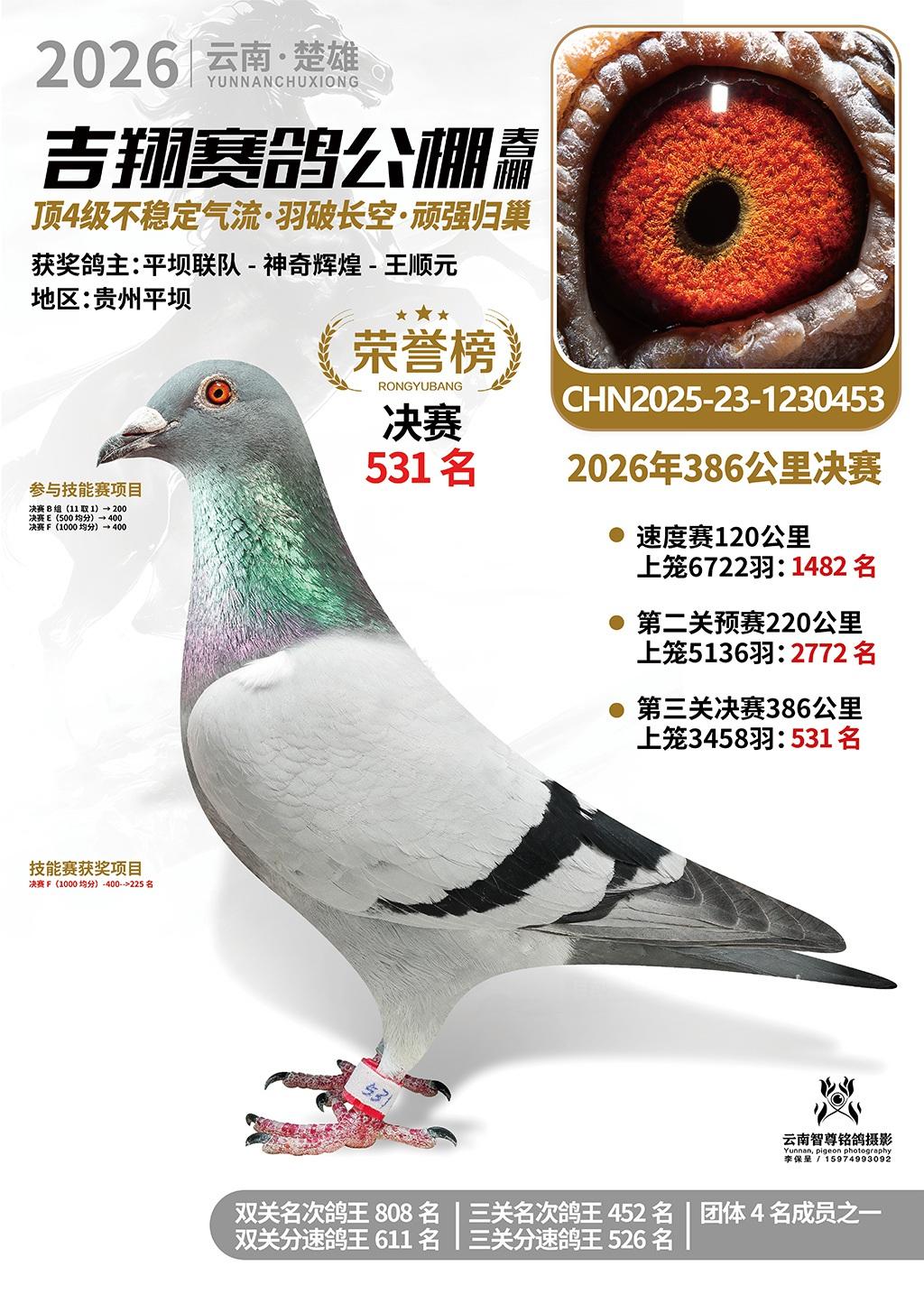 楚雄吉翔公棚(春棚)2026年386公里决赛获奖鸽欣赏