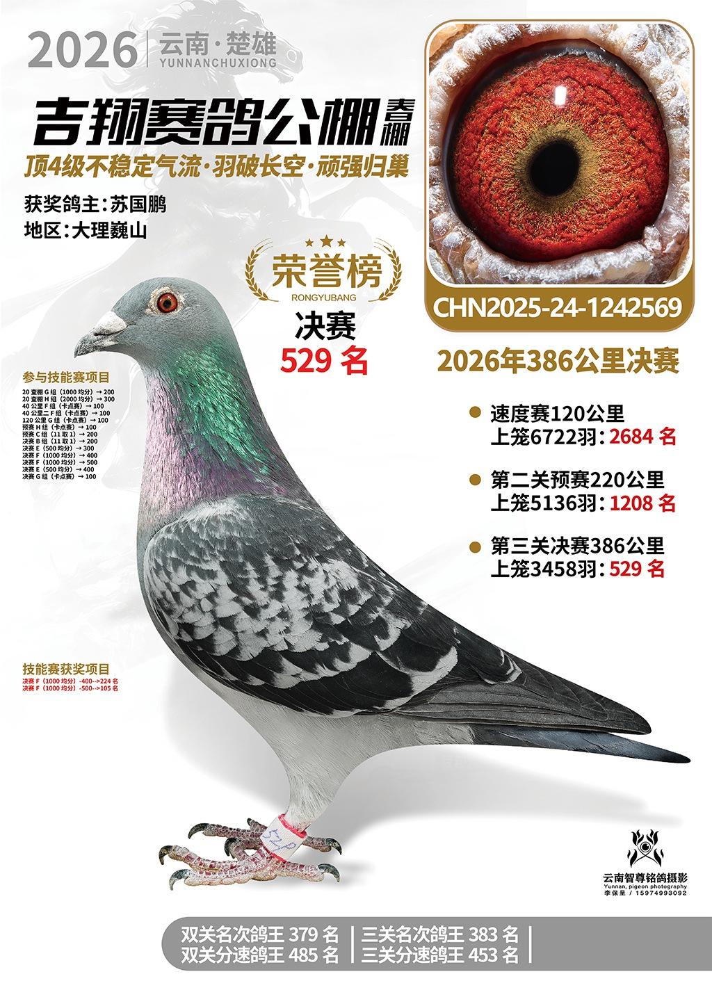 楚雄吉翔公棚(春棚)2026年386公里决赛获奖鸽欣赏