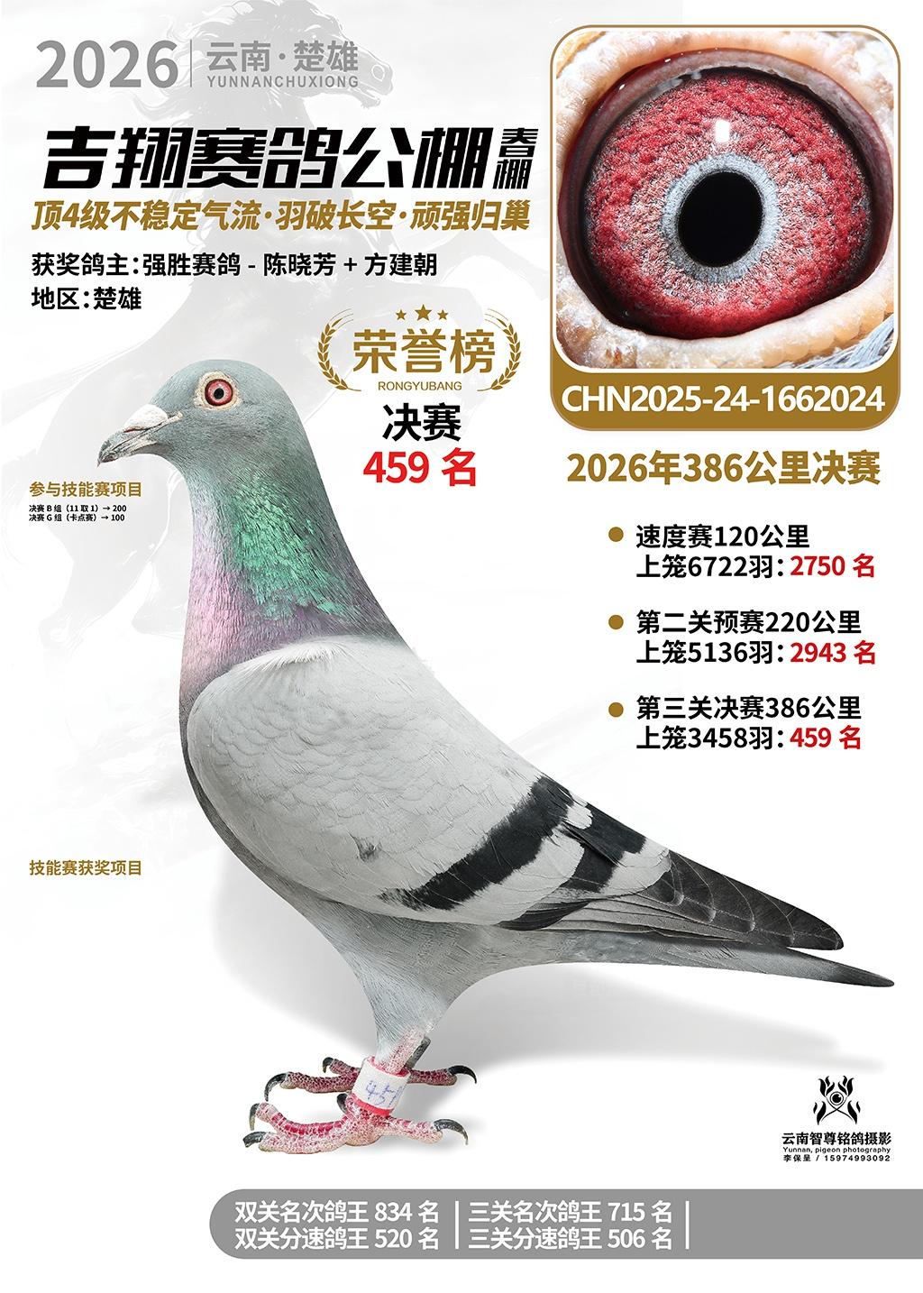 楚雄吉翔公棚(春棚)2026年386公里决赛获奖鸽欣赏