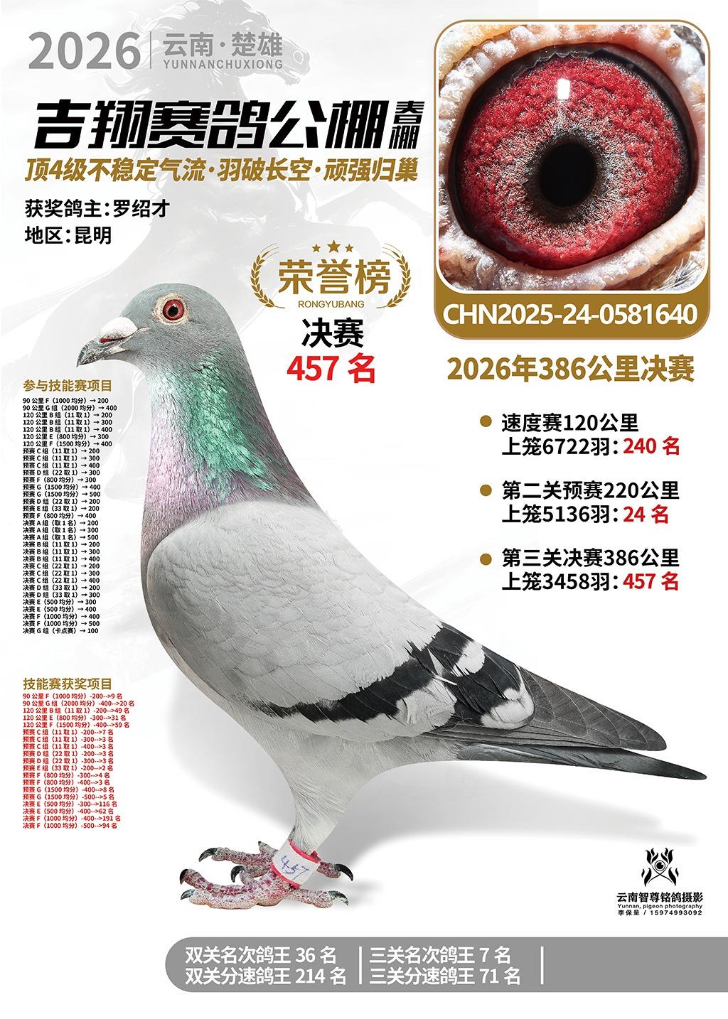 楚雄吉翔公棚(春棚)2026年386公里决赛获奖鸽欣赏