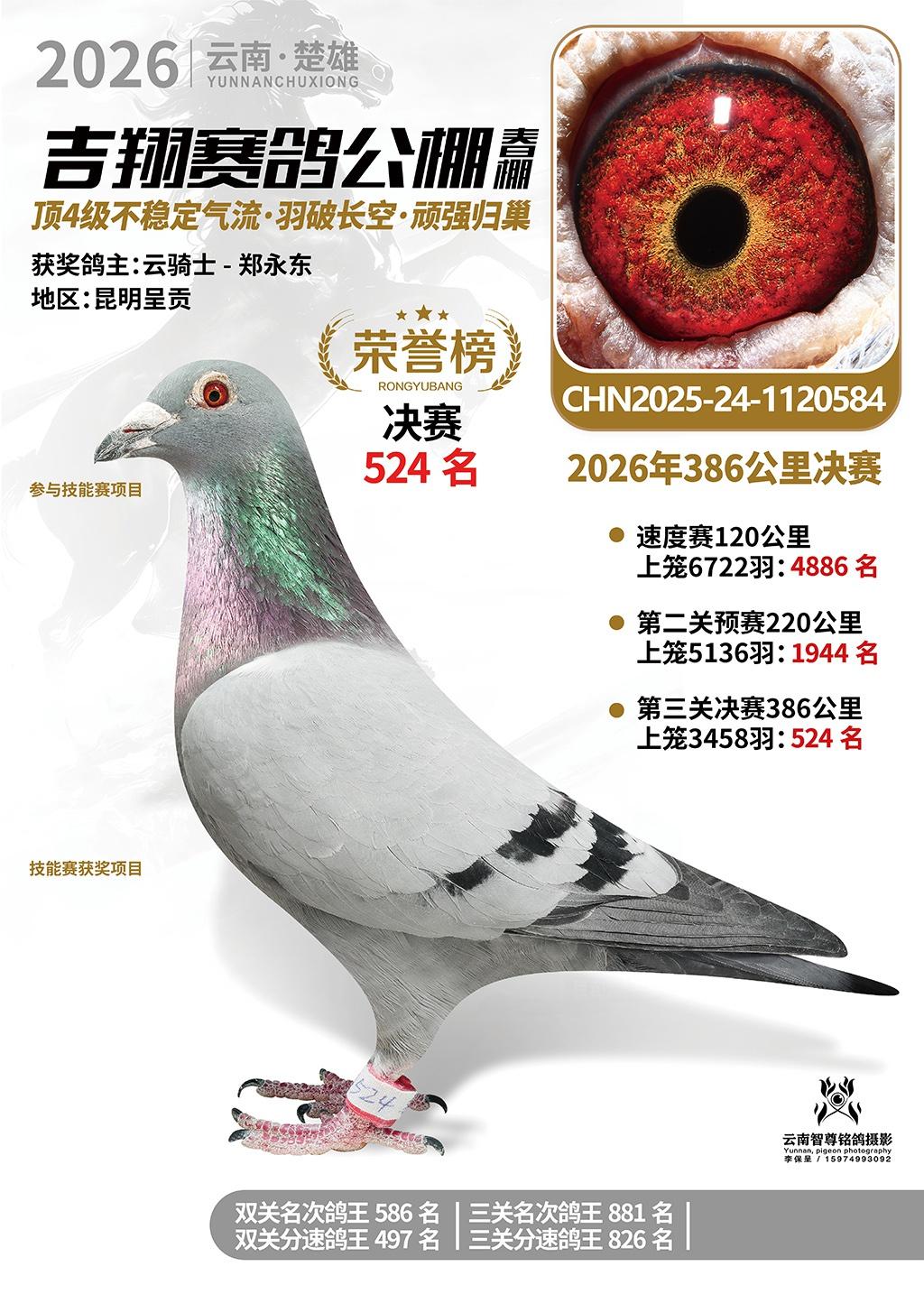 楚雄吉翔公棚(春棚)2026年386公里决赛获奖鸽欣赏