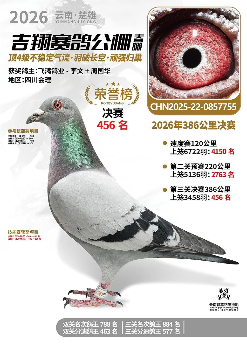 楚雄吉翔公棚(春棚)2026年386公里决赛获奖鸽欣赏