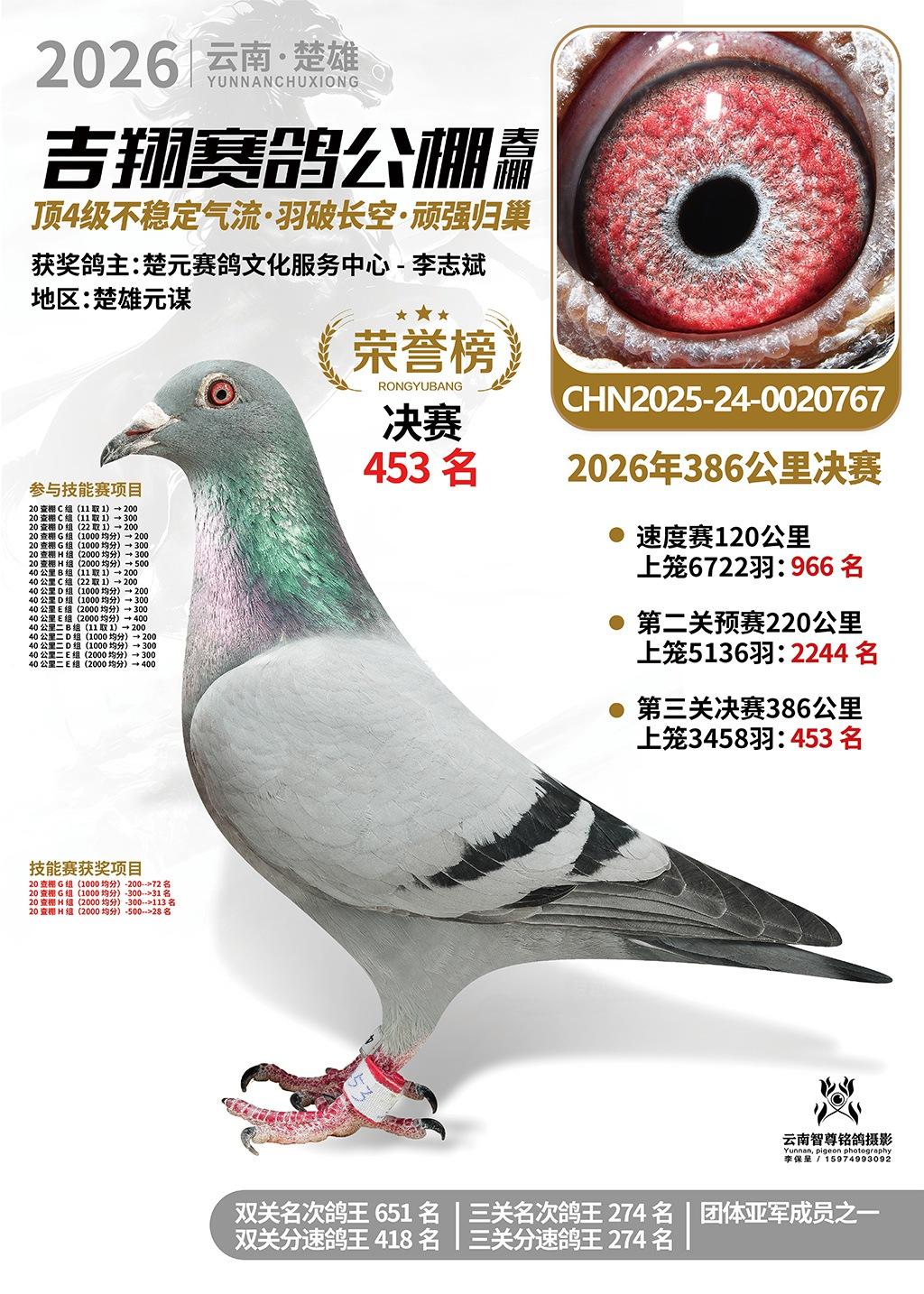 楚雄吉翔公棚(春棚)2026年386公里决赛获奖鸽欣赏