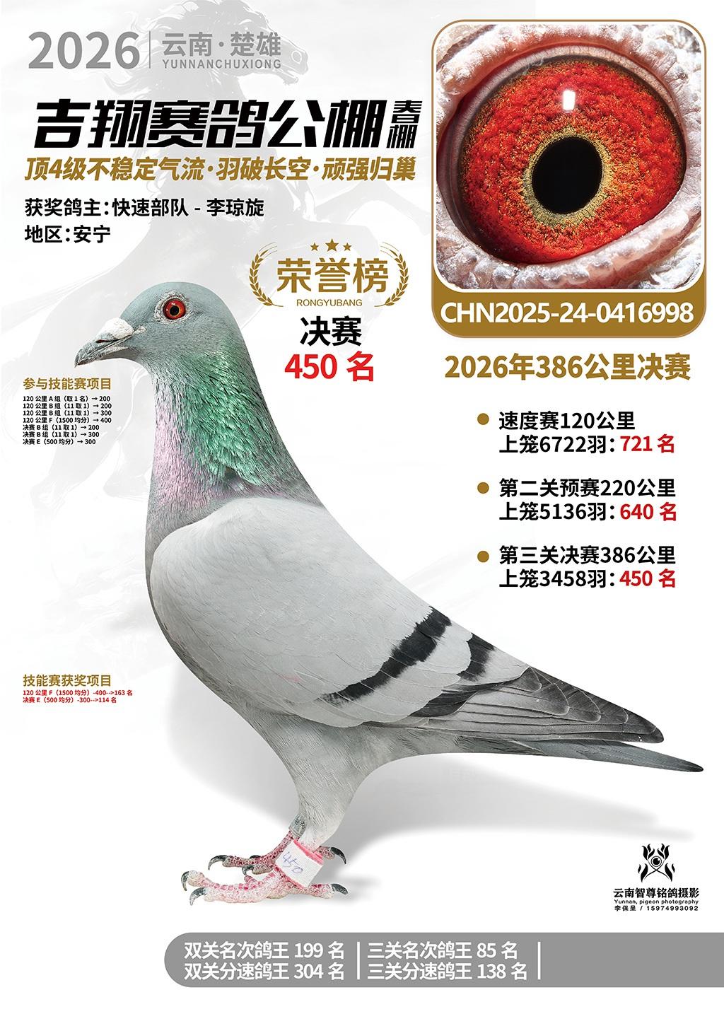 楚雄吉翔公棚(春棚)2026年386公里决赛获奖鸽欣赏
