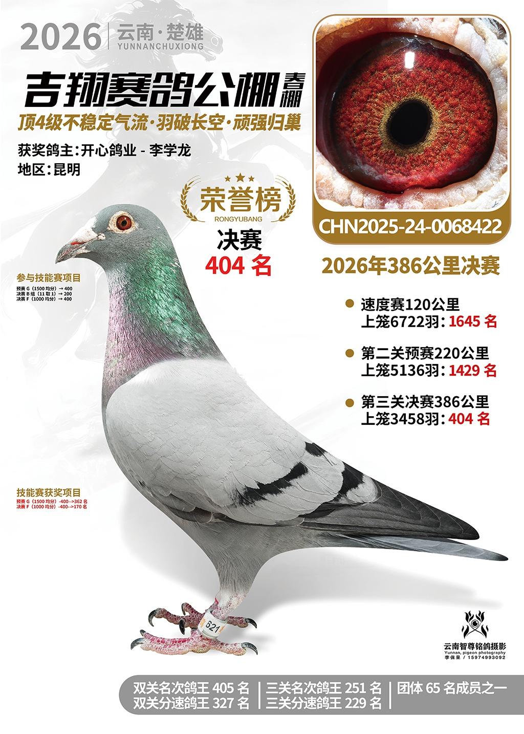 楚雄吉翔公棚(春棚)2026年386公里决赛获奖鸽欣赏