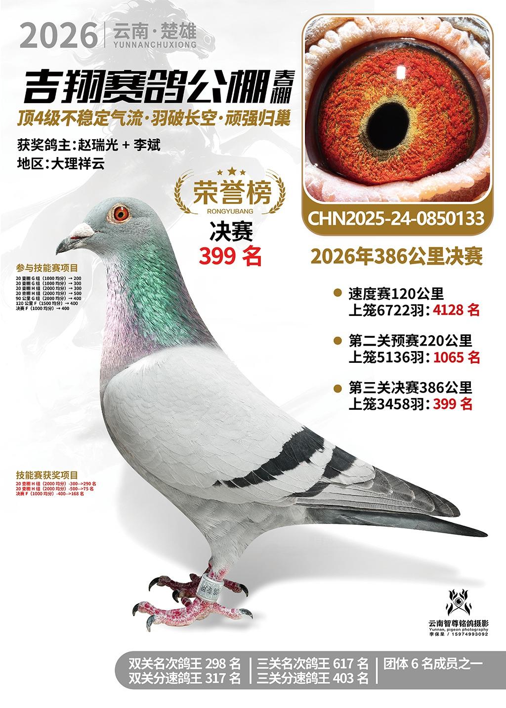 楚雄吉翔公棚(春棚)2026年386公里决赛获奖鸽欣赏