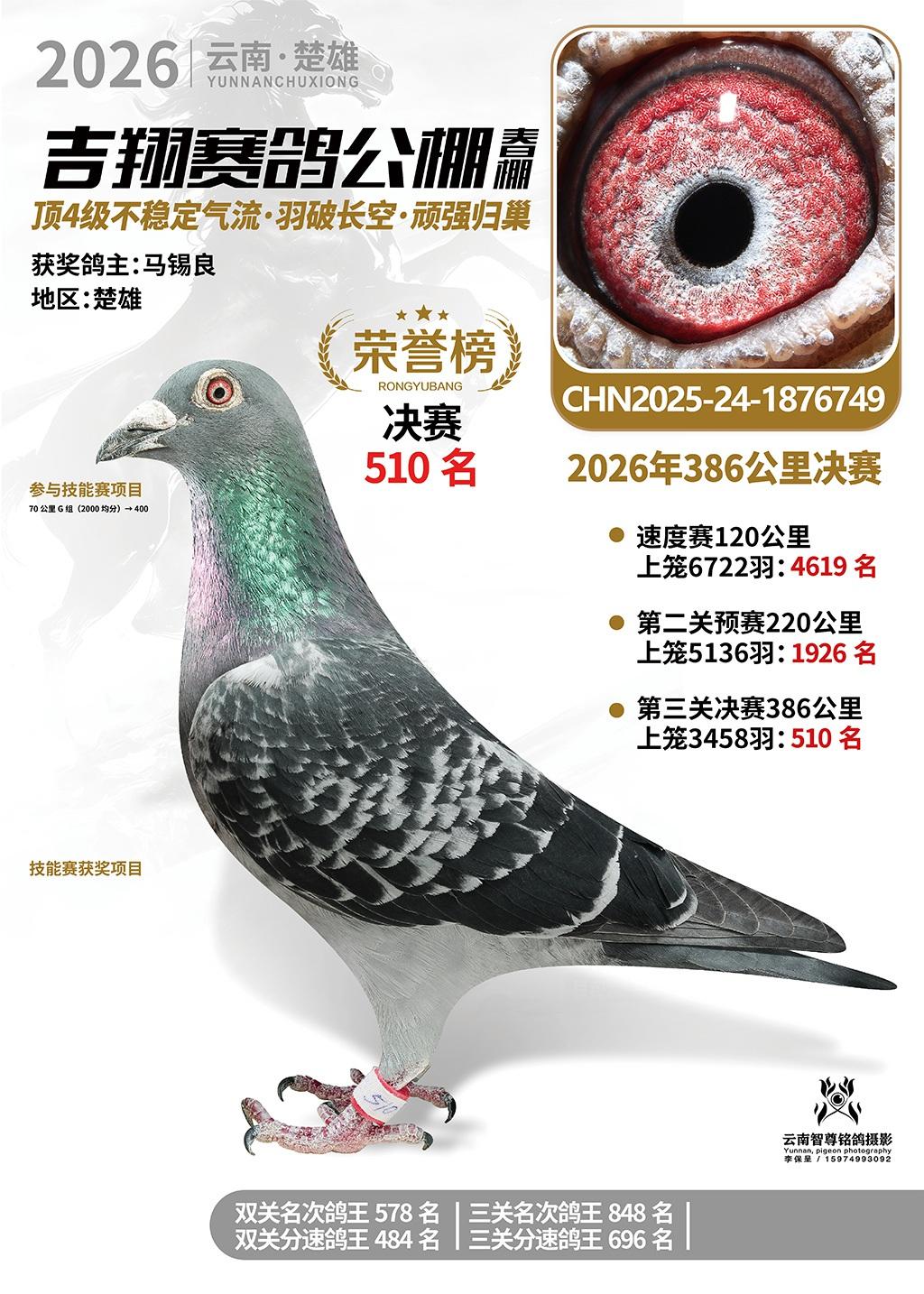 楚雄吉翔公棚(春棚)2026年386公里决赛获奖鸽欣赏