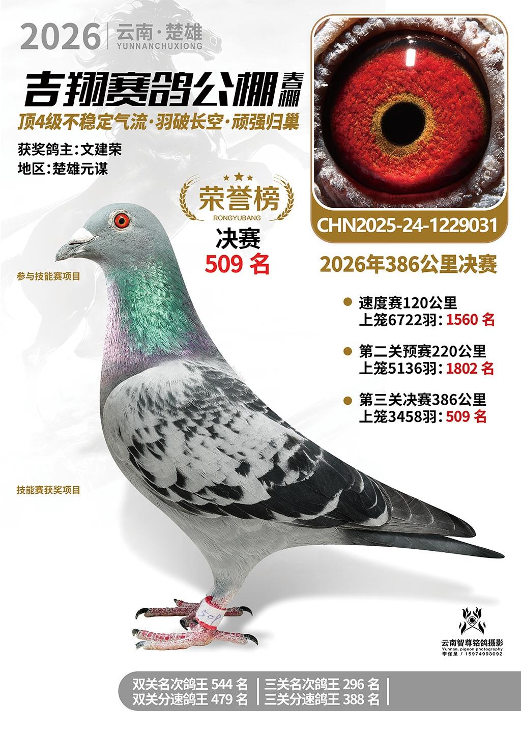 楚雄吉翔公棚(春棚)2026年386公里决赛获奖鸽欣赏