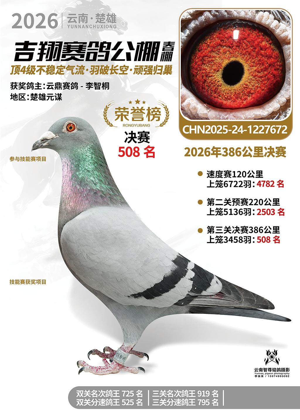 楚雄吉翔公棚(春棚)2026年386公里决赛获奖鸽欣赏