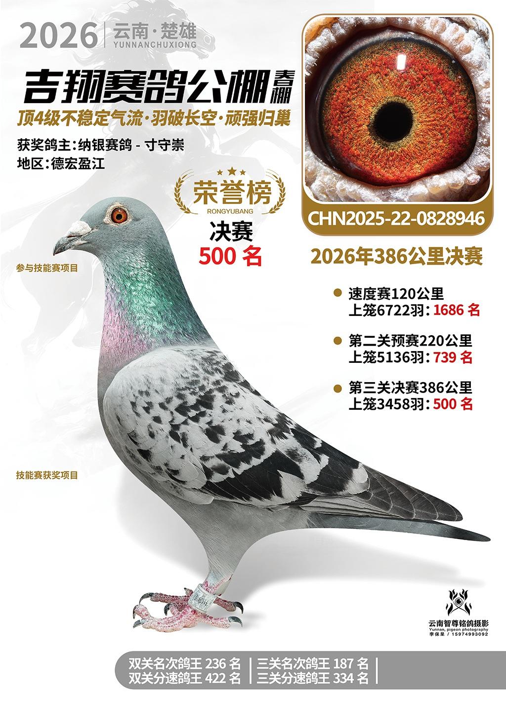 楚雄吉翔公棚(春棚)2026年386公里决赛获奖鸽欣赏