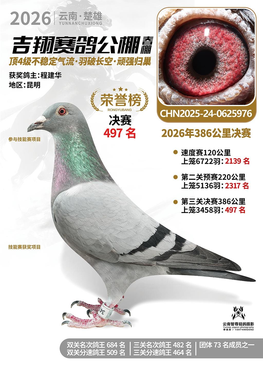 楚雄吉翔公棚(春棚)2026年386公里决赛获奖鸽欣赏