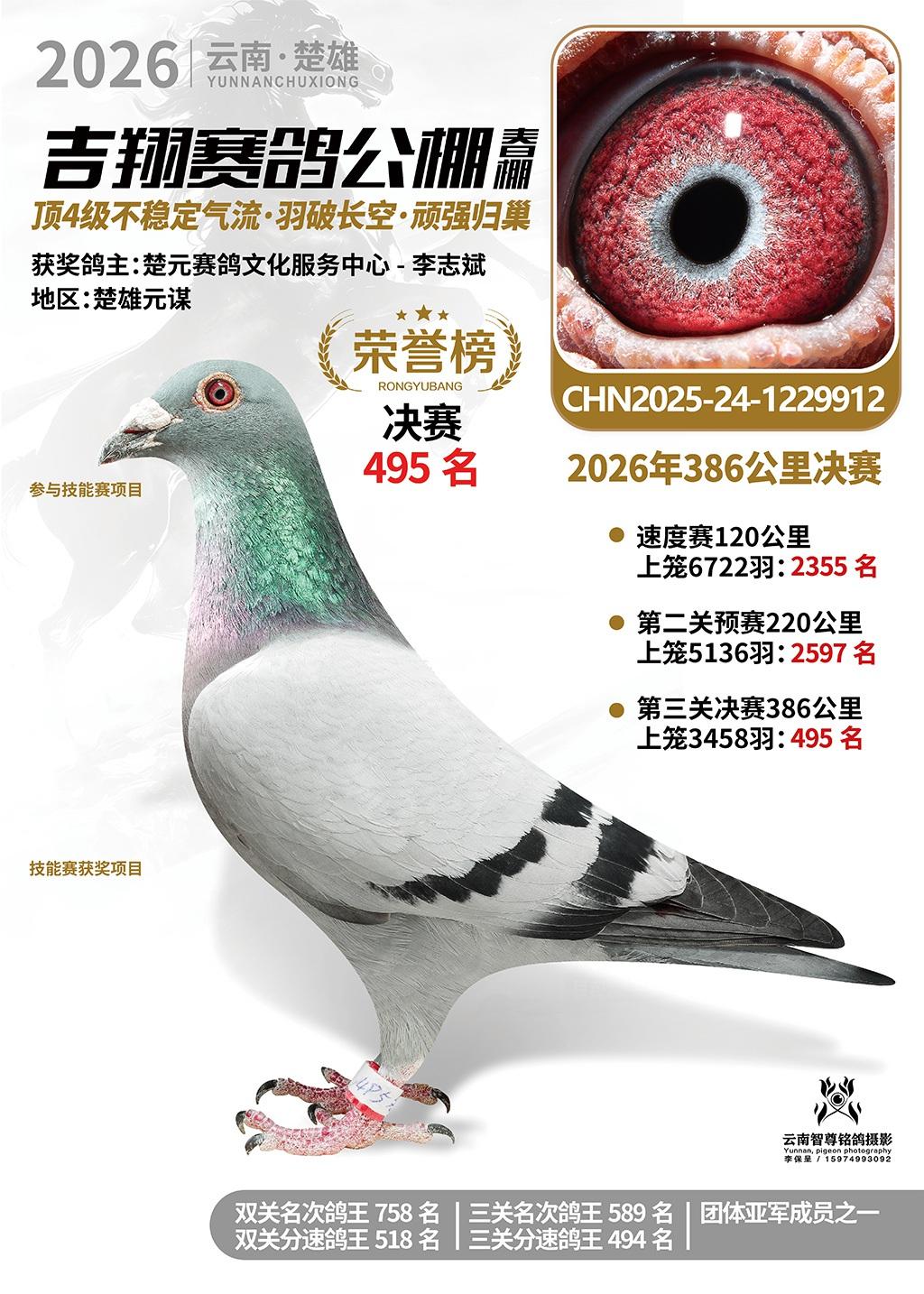 楚雄吉翔公棚(春棚)2026年386公里决赛获奖鸽欣赏