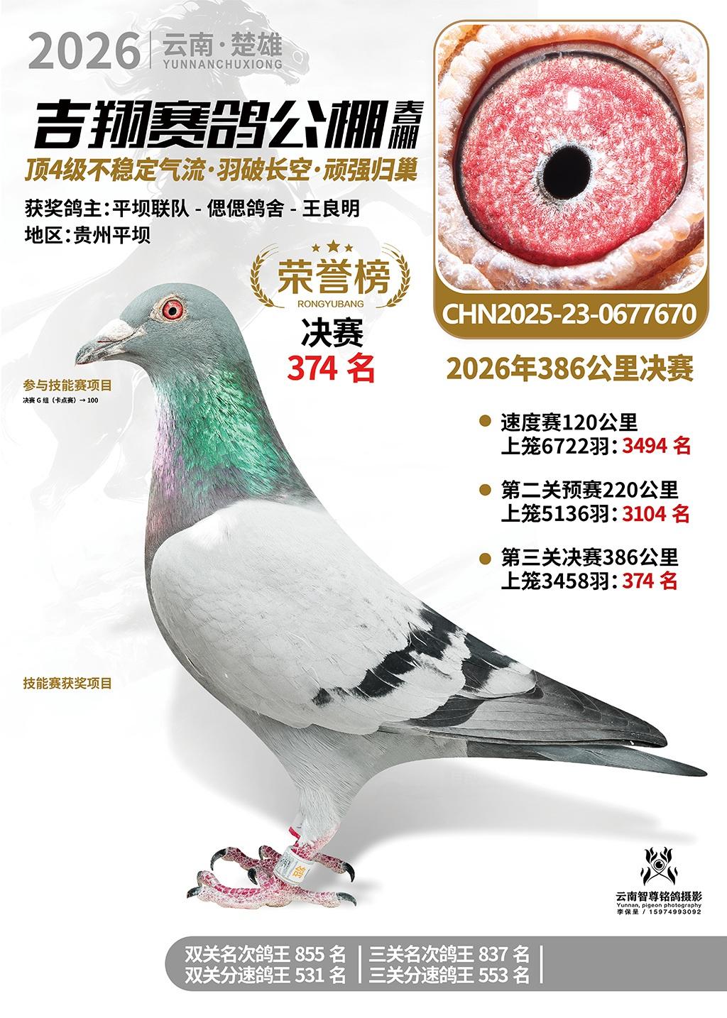 楚雄吉翔公棚(春棚)2026年386公里决赛获奖鸽欣赏