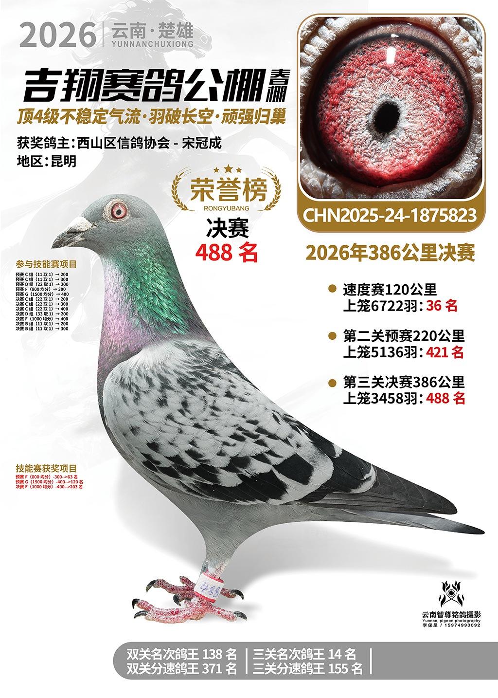楚雄吉翔公棚(春棚)2026年386公里决赛获奖鸽欣赏