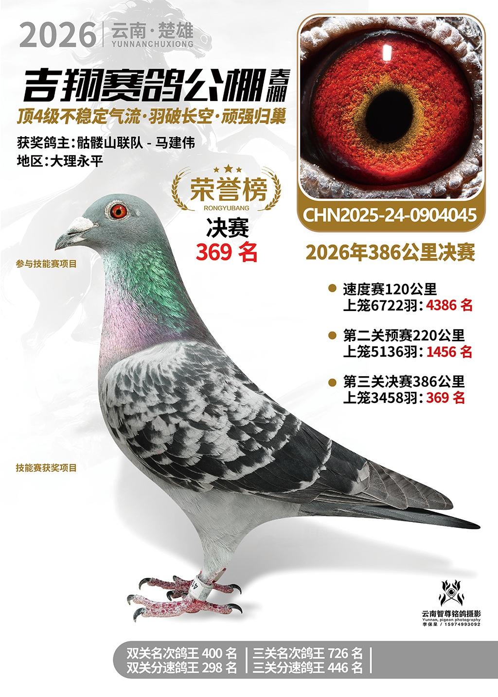楚雄吉翔公棚(春棚)2026年386公里决赛获奖鸽欣赏