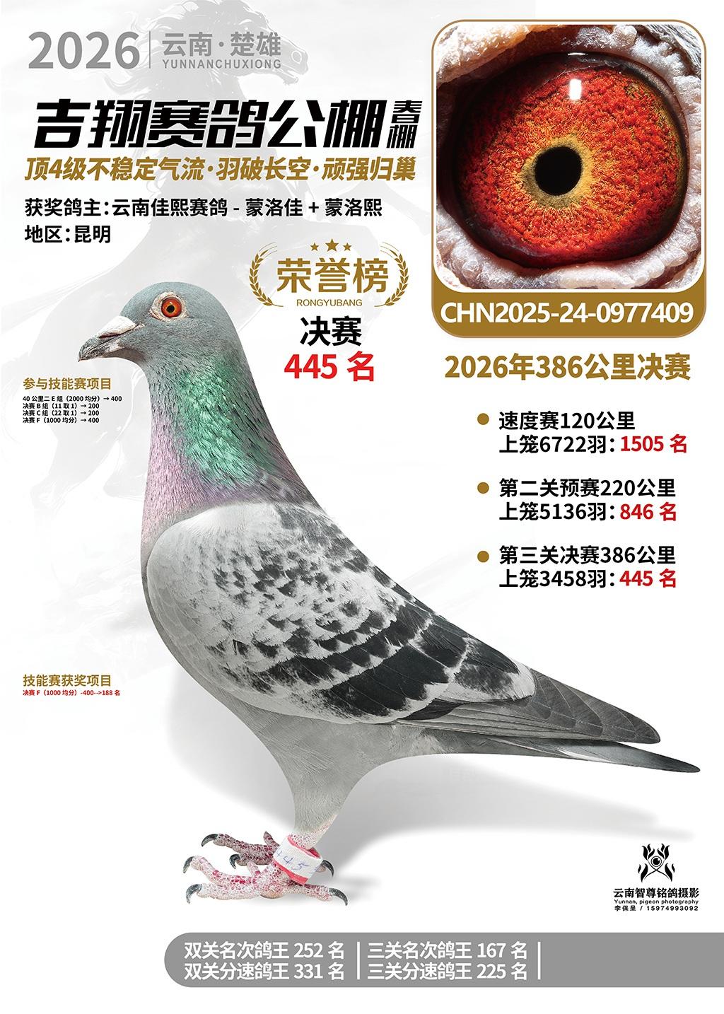 楚雄吉翔公棚(春棚)2026年386公里决赛获奖鸽欣赏